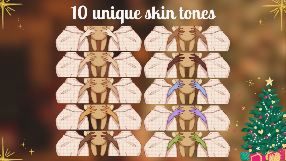 This is just a free Holidays themed vtuber asset! It contains 11 pngs with skin tone variations. Feel free to use it on your streams or on social media.